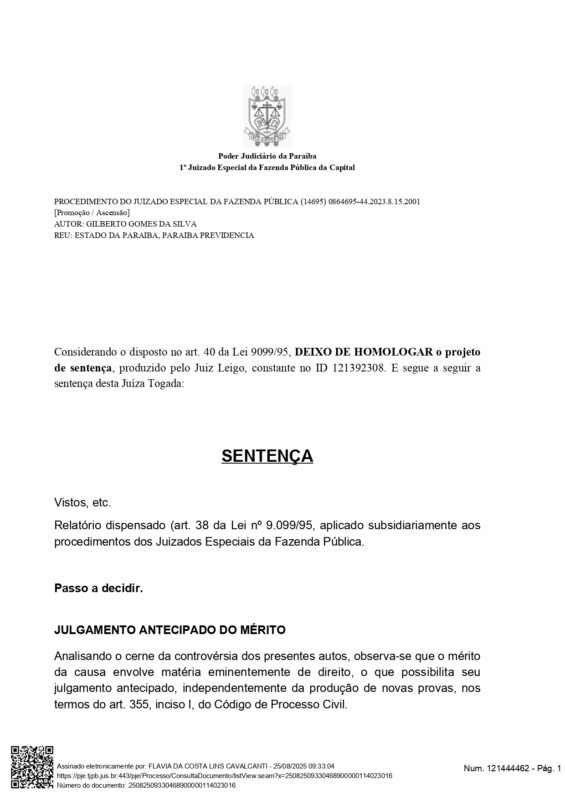 A juíza Flávia da Costa Lins Cavalcanti, do 1º Juizado Especial da Fazenda Pública da Capital, julgou procedente a ação movida pelo Cabo Gilberto Silva, policial militar inativo, contra o Estado da Paraíba e a Paraíba Previdência (PBPrev). A decisão publicada nesta segunda-feira (25) determina a retificação de sua patente para o posto de sargento, desde a data em que foi transferido para a reserva remunerada.