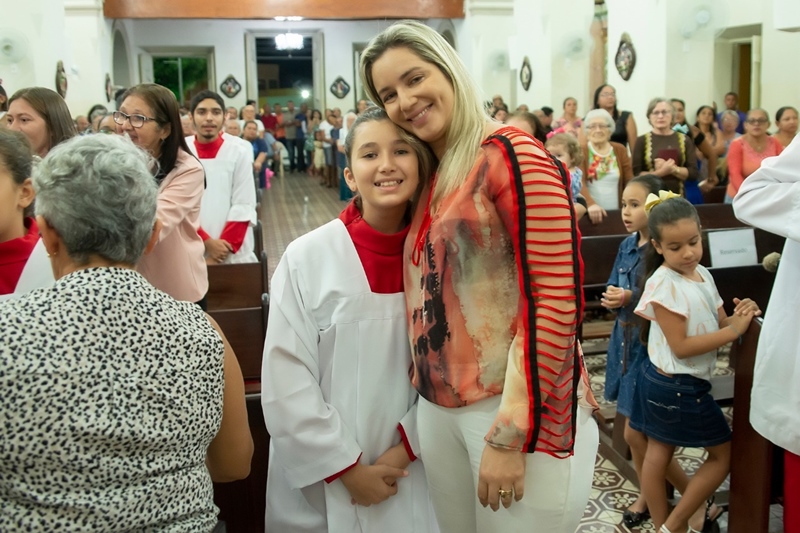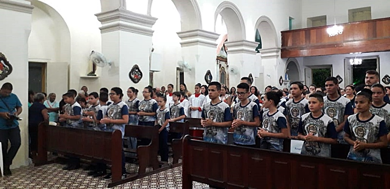 Na missa desta quinta-feira (15) celebrada pelo Padre Mário Silva foram investidos, entre meninos e meninas, 28 novos coroinhas para os serviço da Paróquia de Nossa Senhora da Conceição.