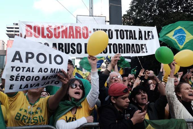 No ato que mais reuniu manifestantes, na Avenida Paulista, em São Paulo, houve manifestações de apoio ao ministro Sergio Moro (Justiça), à Lava-Jato, ao Ministério Público e ao presidente Jair Bolsonaro e muitas críticas ao STF e ao projeto de abuso de autoridade.
