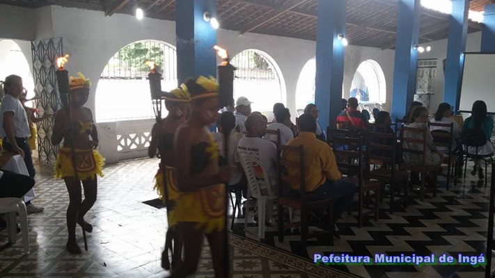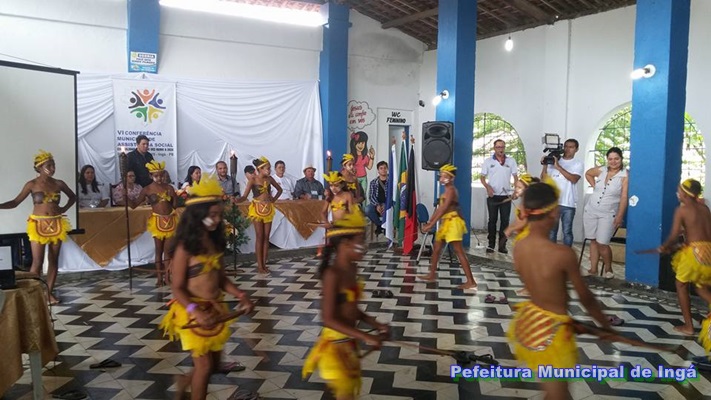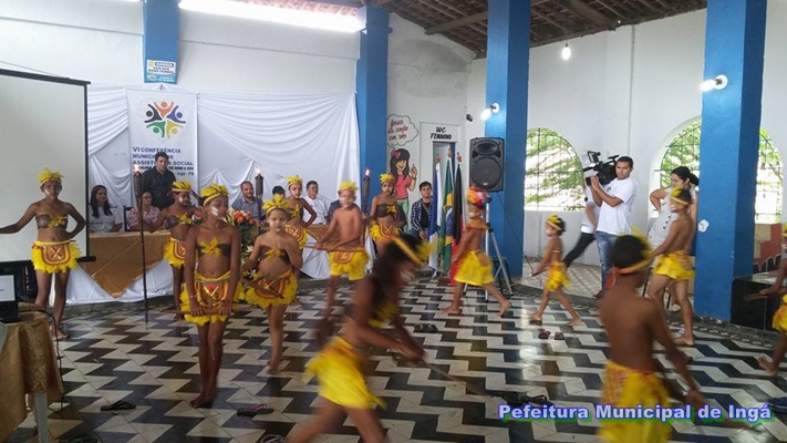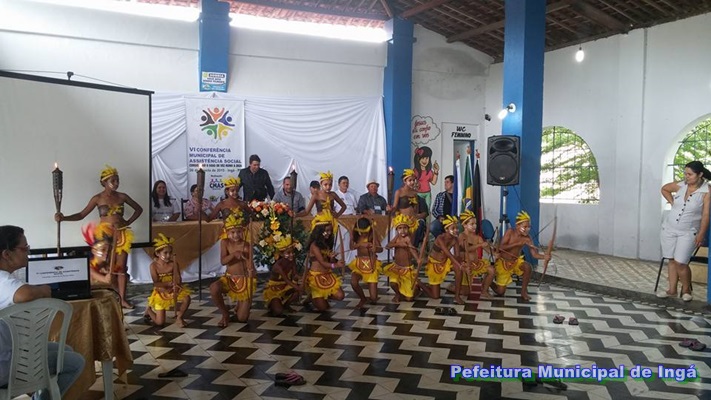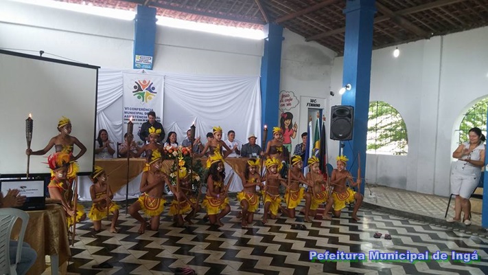 Os trabalhos da conferência foram precedidos pela apresentação de atividades culturais por beneficiários dos programas sociais do município. Grupo de dança indígena e orquestra de violões.