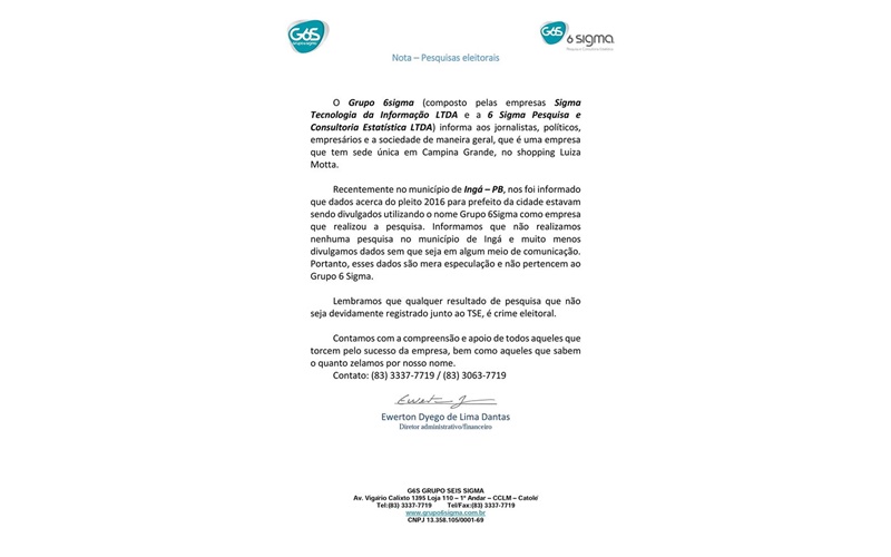 Moradores do Distrito de Pontina, município de Ingá, foram surpreendidos com a distribuição anônima na calada da madrugada de um panfletos com informações sobre dados de uma suposta pesquisa levando a logomarca da empresa 6SIGMA.