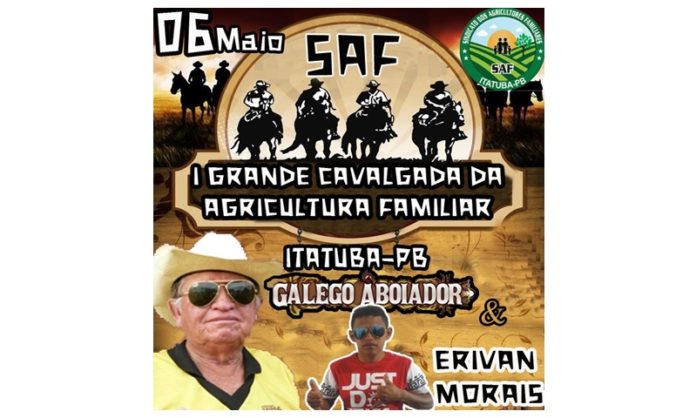 Está confirmada para domingo dia 06 de maio a I GRANDE CAVALGADA DA AGRICULTURA FAMILIAR em Itatuba, com a participação do Galego Aboiador e Erivan Morais.