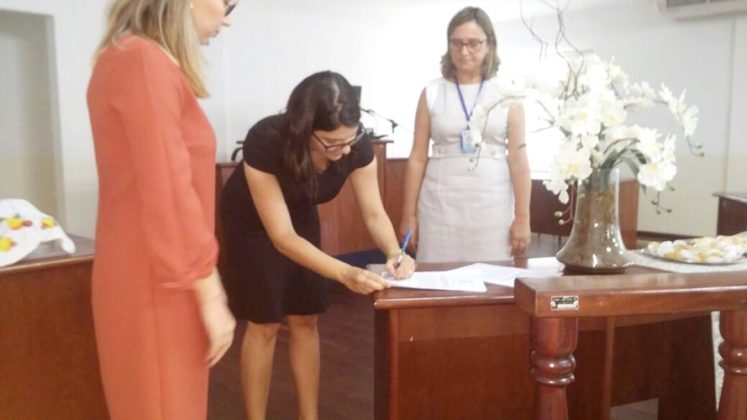 Rafaela Pereira Toni Coutinho assinou termo de posse na 1ª Vara Mista, e Isabelle Braga Guimarães de Melo na 2ª Vara. Fica no aguardo de confirmação por parte do Tribunal de Justiça quem assumira a Justiça Eleitoral e Direção do Fórum.