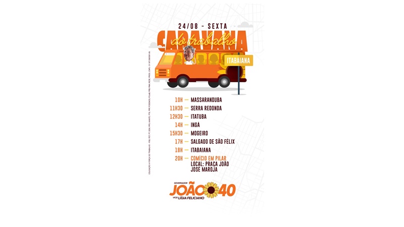 No clima da campanha eleitoral 2018 que começa a esquentar após a oficialização das candidaturas, a Caravana do PSB que tem a chapa majoritária composta por João Azevedo, Dra. Lígia, Veneziano e Luis couto percorrerá um roteiro que começa em Massaranduba pela manhã, passa por Serra Redonda, Itatuba, Ingá e segue para Mogeiro, Salgado de São Félix, Itabaiana e Pilar.