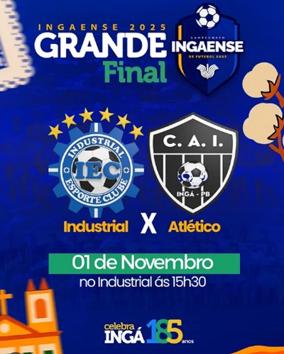 A emoção do futebol amador ingaense chega ao seu ponto máximo neste sábado, 1º de novembro, com a grande final do Campeonato Ingaense de Futebol 2025. O confronto decisivo será entre Industrial Esporte Clube e Clube Atlético Ingaense (CAI), a partir das 15h30, no Campo do Industrial.