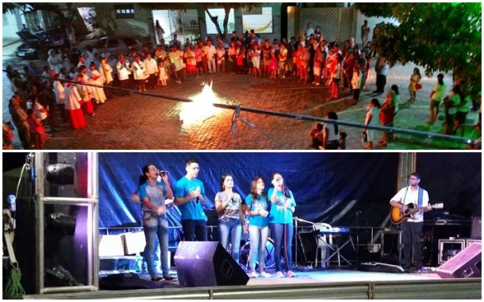 Os jovens pregam a palavra através da música, encenações e orações em movimentos por toda a cidade e show gospel durante o culto noturno.
