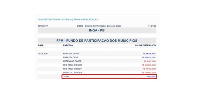 A secretaria municipal de finanças foi surpreendida pelo alto valor descontado pelo INSS, na ordem de 405 mil reais, no que zerou a 1ª parcela mensal do FPM que é transferido para as prefeituras no dia 10 de cada mês.