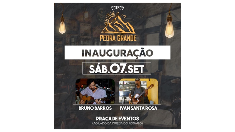 O Boteco Pedra Grande abrirá suas portas ao público dia 07 de Setembro de 2019 a partir das 20:00hs. Com o melhor da MPB, cerveja gelada, caldos, petiscos e drinks diferenciados.