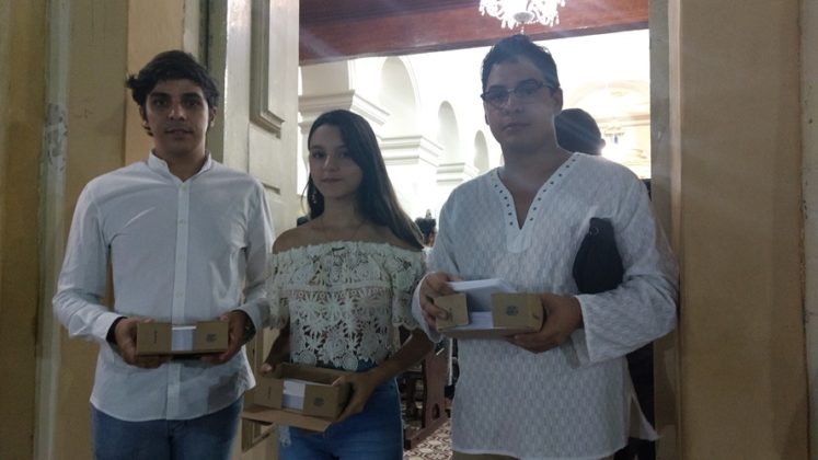 O ex-prefeito Lula participou da caminhada do ofertório ao lado da filhas, a vereadora Mana, Sharon e sobrinho Igor Silveira.