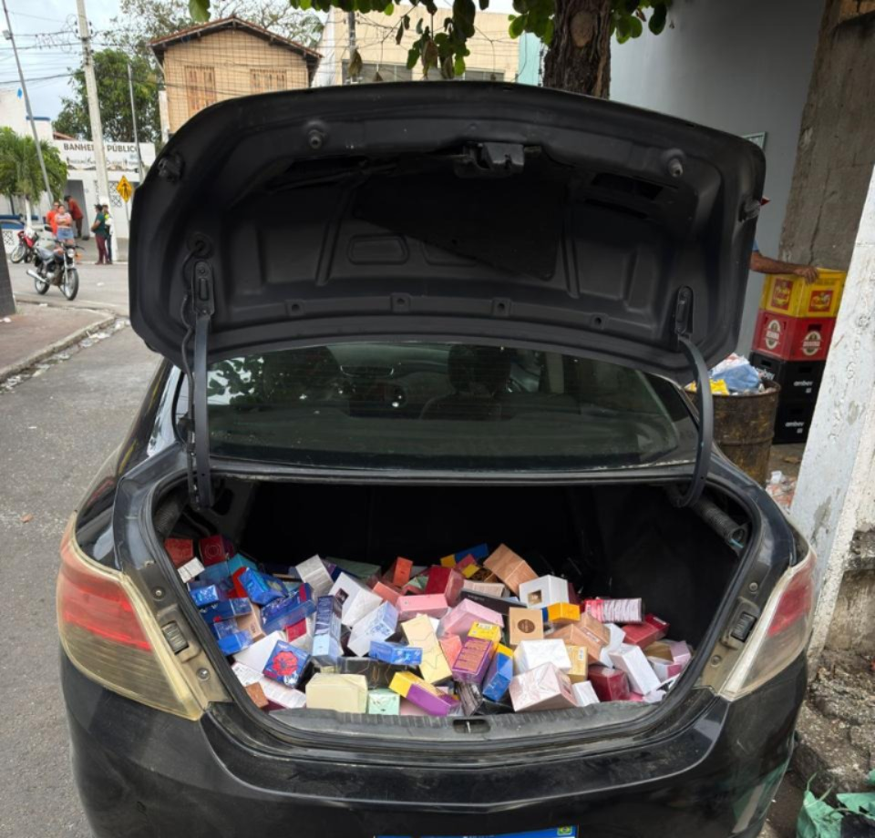 Ao todo foram recuperados mais de 300 produtos que estavam sendo colocados no porta-malas de um carro com registro de roubo e furto.