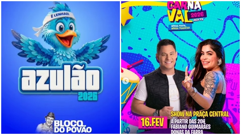 Segunda é dia de Azulão nas ruas e shows na Praça Central de Ingá com Fabiano Guimarães e Donas da Farra