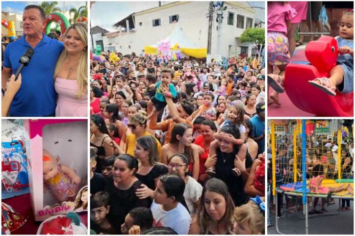 O evento, que antecede o Dia das Crianças, contou com uma ampla estrutura de brinquedos instalados em todo o entorno da praça, garantindo momentos de lazer e encanto para os pequenos. Além disso, foram distribuídos brinquedos, pipocas, algodões-doce e outras guloseimas, animando ainda mais a celebração.