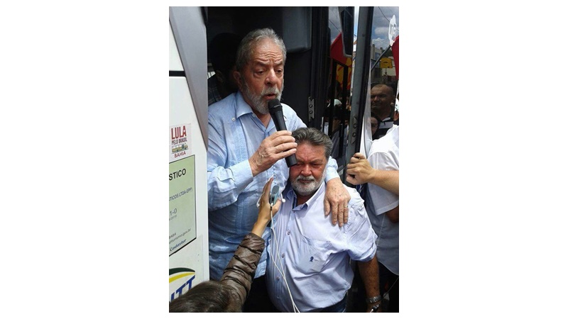 De passagem por Riachão do Bacamarte, populares cercaram o ônibus que conduzia a caravana do ex-presidente Lula e governador Ricardo Coutinho. O ônibus parou, Lula abriu a porta, falou rapidamente com seus apoiadores e abraçou o prefeito Gordo Amaral (PSDB).