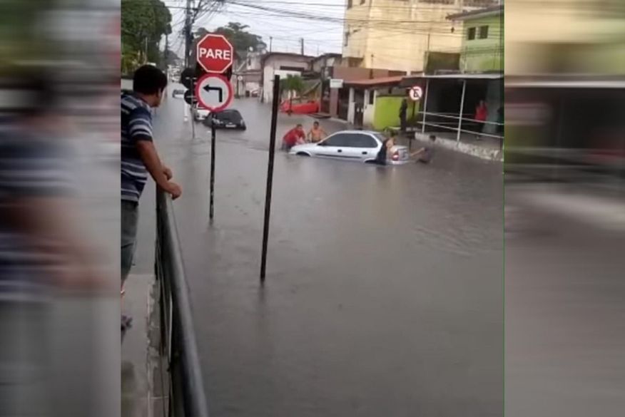 CAOS: Carros boiam após ruas ficarem alagadas durante temporal na Capital