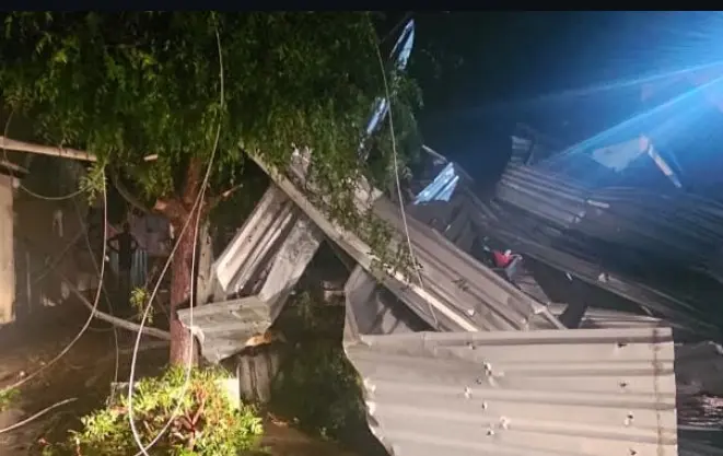O Corpo de Bombeiros Militar da Paraíba (CBMP) foi acionado na noite deste sexta-feira, 27, para uma ocorrência de colapso devido às fortes precipitações e ventos ocorridos durante a noite, o telhado colapsou e foi arremessado para uma rua adjacente vindo a cair em cima de duas residências e de um veículo.