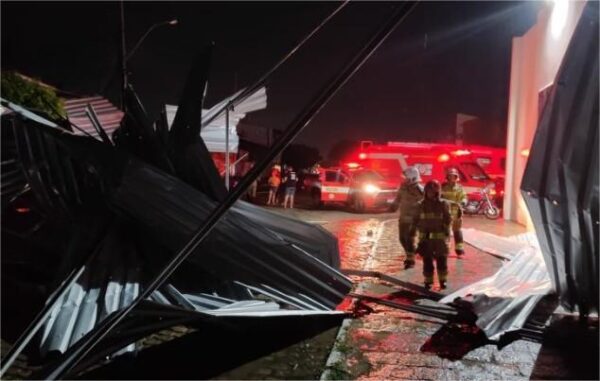 O incidente provocou o rompimento da rede elétrica local interrompendo a iluminação pública, além da via ser parcialmente obstruída pelos destroços deste telhado.
