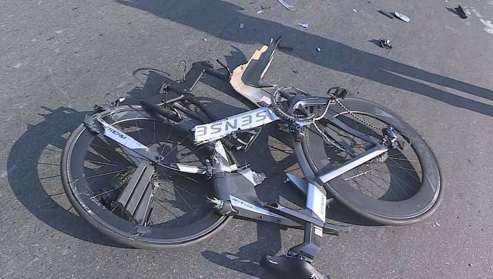 Bicicleta ficou destruída — Foto: Reprodução/TV Globo