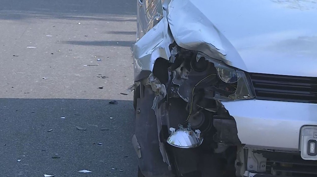 Parte da frente do carro ficou destruída — Foto: Reprodução/TV Globo