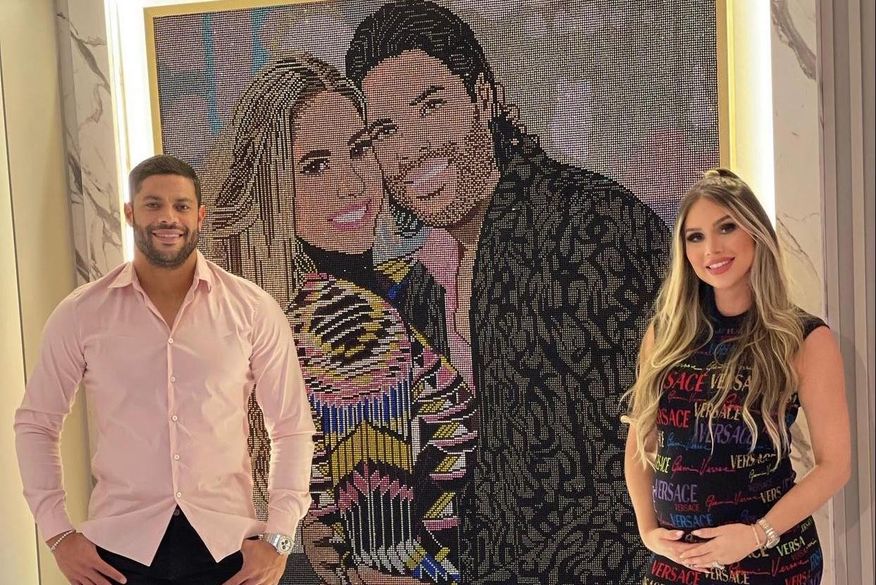 O apartamento de 480 m² ganha personalidade com um quadro de Swarovski que possui a imagem do casal, Hulk e Camila, assinado pelo artista colombiano Mauricio Benitez, apelidado de “Mr Bling Colombia”.