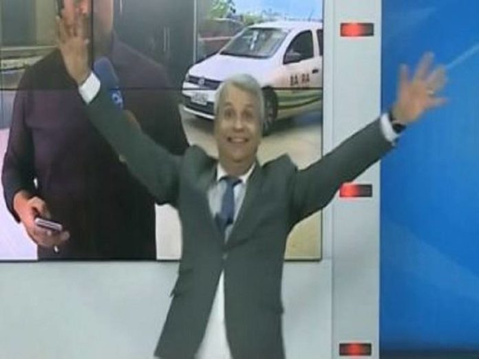 Neste momento, o apresentador dá um grito de exclamação no estúdio, interrompendo o repórter, que, em seguida, complementa: “Morreu antes mesmo de receber o socorro médico”.