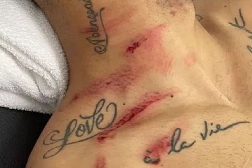 Nas redes sociais, Cunha exibiu a lesão e afirmou que teria problemas para explicar os cortes para a esposa Gabriela Duarte Nogueira.
