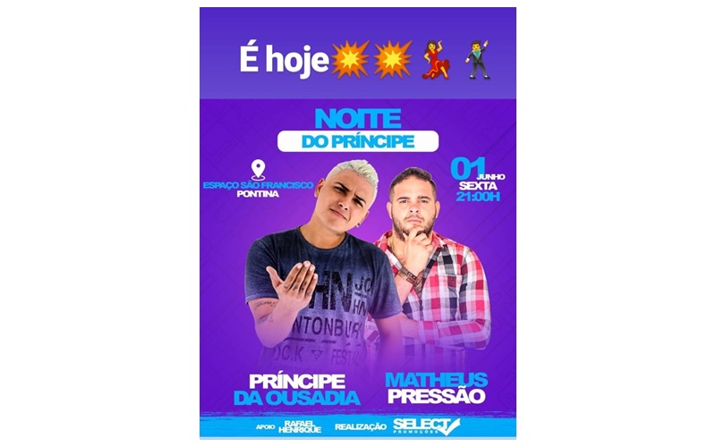 Home Geral EM PONTINA: Nesta sexta (01) tem a noite do Príncipe