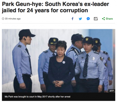 A ex-presidente da Coréia do Sul, Park Geun-hye, acaba de ser condenada a 24 anos de prisão.
