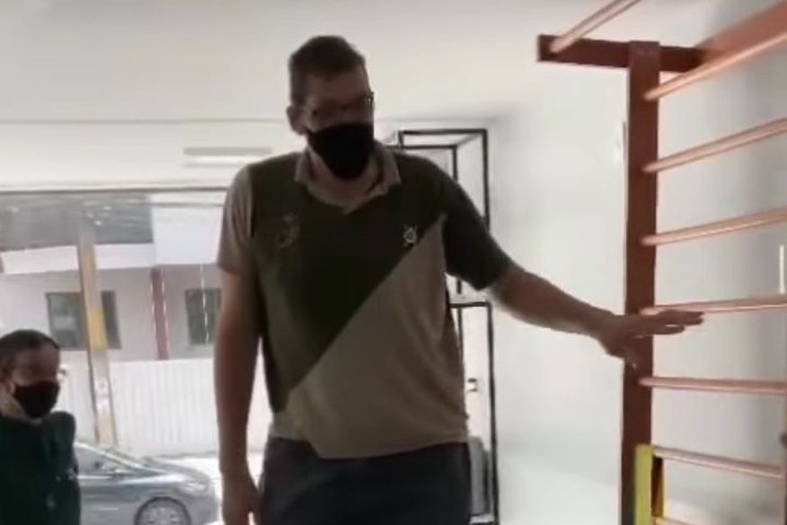 Nas redes sociais, o homem mais alto do Brasil mostrou o momento em que fica em pé em uma clínica na cidade de Campina Grande, na Paraíba.