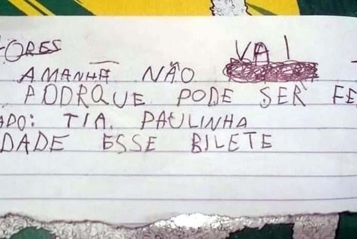 O menino viralizou nas redes sociais após escrever um bilhete em nome da professora falando que não haveria aula no dia seguinte porque poderia ser feriado.