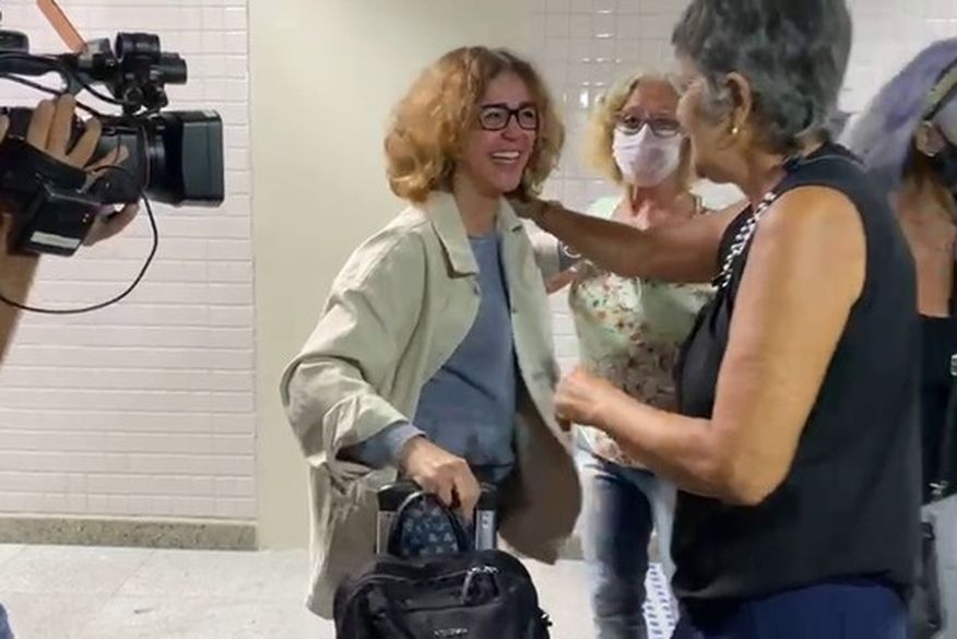 Familiares e amigos se reuniram no aeroporto para receber a paraibana que ficou 26 dias desaparecida durante a guerra. Entre os familiares estava a mãe de Silvana, visivelmente emocionada em receber a filha.