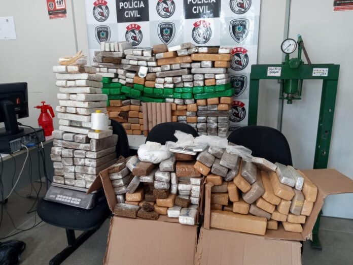Além da maconha foram apreendidos cinco balanças, uma prensa grande, rojões, um liquidificador industrial e uma camionete Nissan.