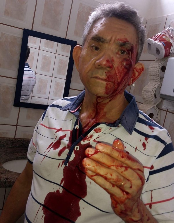 Paulo Rafael Procópio, de 62 anos, ficou com o rosto ensanguentado após episódio de violência na sala de aula, em Lins (SP). Professor e um cuidador também foram feridos por aluno em outra escola da cidade.