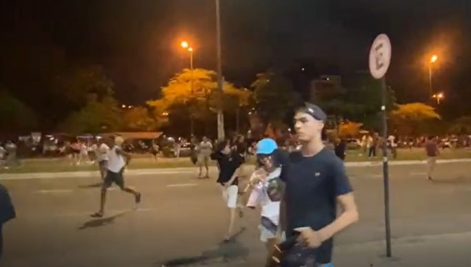 Pessoas saíram correndo da Praça da Paz e atravessando a avenida principal dos Bancários correndo.