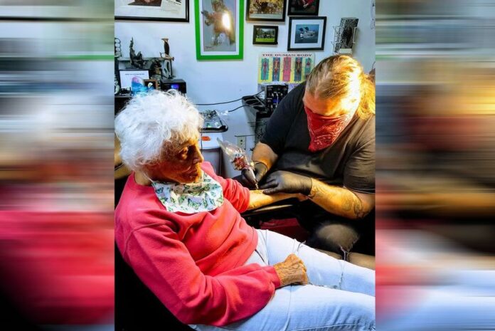 “Vovó é uma durona agora, ostentando aquela tatuagem ”, postou Zavitz-Jones no Facebook com fotos da primeira tatuagem da centenária. “Muito obrigado AWOL Custom Tattooing LLC, Ray Reasoner Jr e sua equipe por fazer a vovó se sentir confortável e como uma estrela. Você é incrível.”