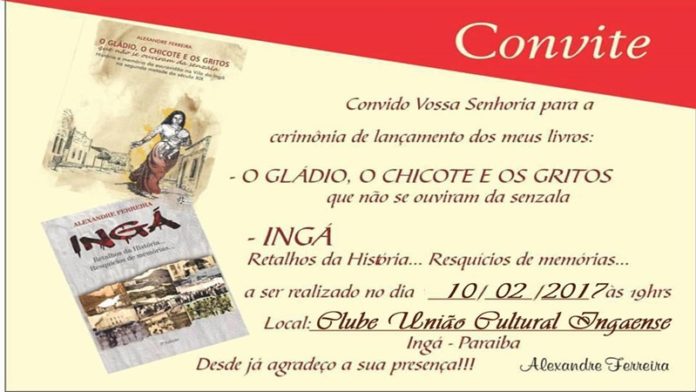 É motivo de orgulho para todo ingaense contar com o trabalho dedicado do professor Alexandre, que aguça  e desperta a curiosidade do leitor sobre suas origens e raízes, no que recomendamos a aquisição de seus livros. O lançamento será hoje, sexta-feria (10), às 19:00 hs, no Clube União Cultural Ingaense. Estudantes, educadores e leitores em geral, estão todos convidados.