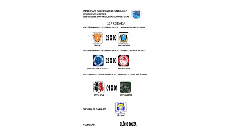 Neste final de semana foram realizados três jogos pela 11ª rodada do Campeonato Riachonense.