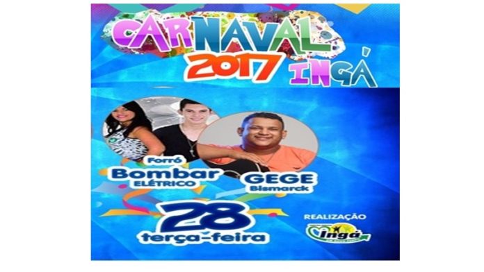 CARNAVAL INGÁ: Hoje à tarde têm AS VIRGENS e OS MULAMBOS. À noite, Bombar e Gegê Bismark no Pátio da Folia
