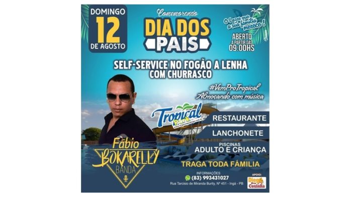 Traga sua família e amigos para curtir o dia dos pais neste domingo (12) no Tropical Park de Ingá.