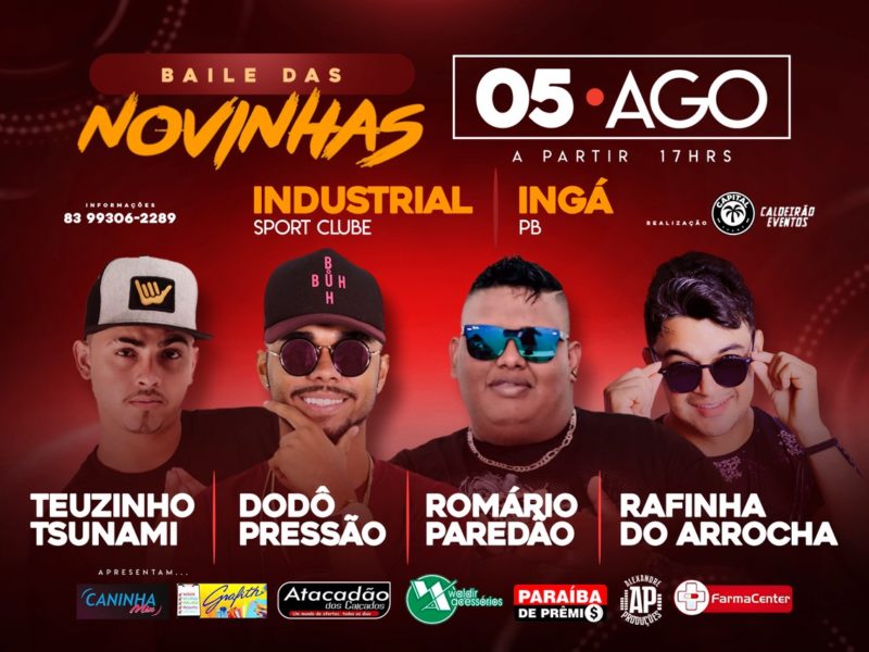 A domingueira no Industrial começa às 17 horas com as atrações que fazem sucesso no momento com a juventude.