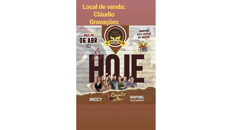Neste Sábado(06), ás 21h00, show com as atrações Cavalo de Pau, Jaccy e Rafael Sacanão, no Parque e Haras Burity pelo começo do circuito da AVACG.