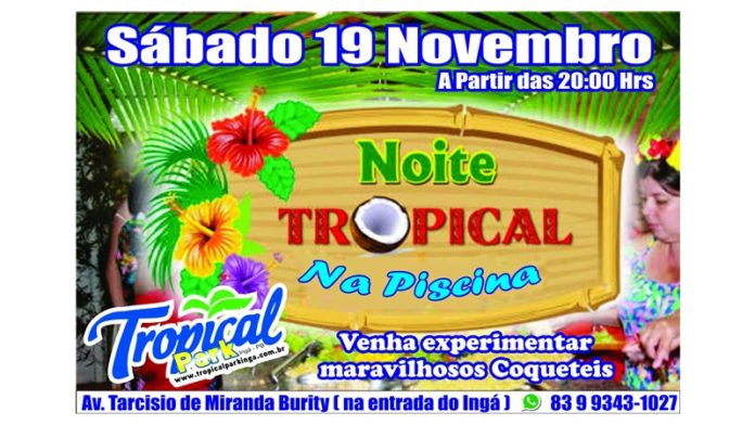 A maior e melhor área de lazer de Ingá e região abrirá neste final de semana com mais uma atração. Além de poder desfrutar do belo ambiente do Parque Aquático neste calorão de verão durante as manhãs e tardes de sábado e domingo, o Tropical Park oferecerá durante a noite FESTA NA PISCINA, com música ao vivo e maravilhosos drinks servidos no bar da área aquática, a partir das 20:00 hs. Tudo de bom !