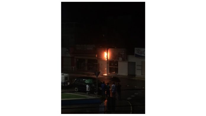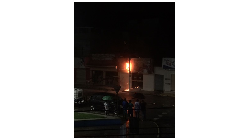 PERIGO: Poste em chamas em frente a funerária próximo a prefeitura de Ingá
