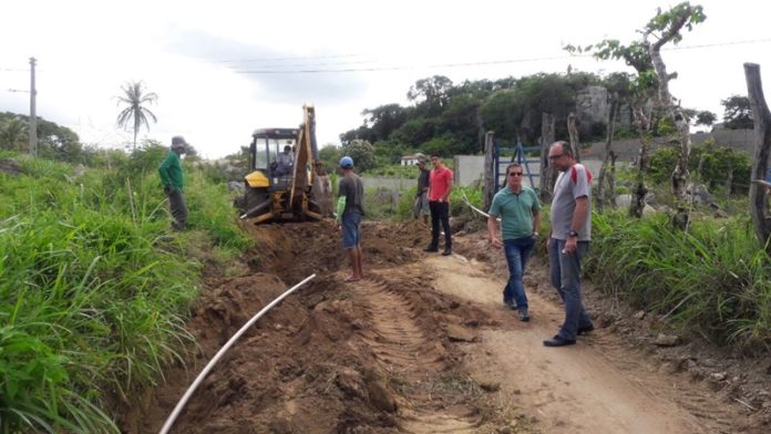 A importante obra de distribuição de água em caráter coletivo está sendo realizada em parceria envolvendo a Prefeitura Municipal, Governo Federal, através do Dnocs e Governo do Estado.
