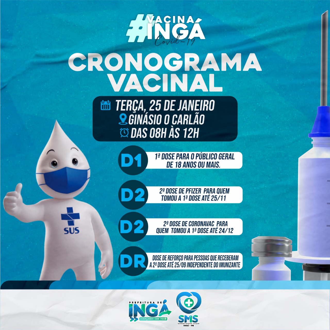 Nesta terça-feira 25, daremos continuidade a vacinação dos públicos prioritários, a seguir: