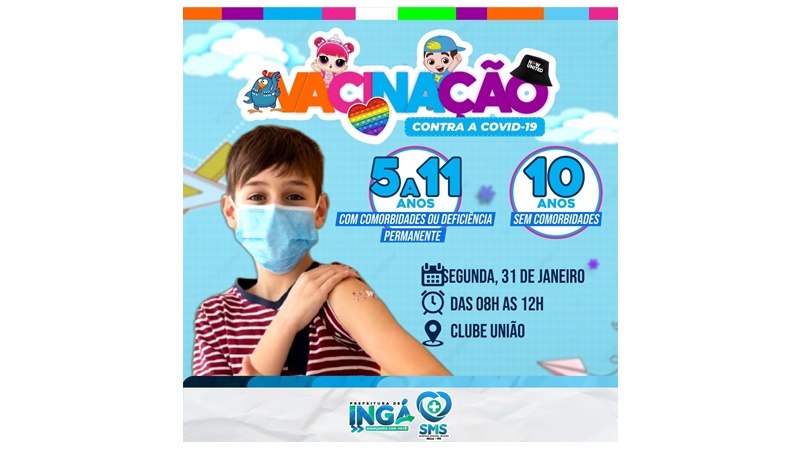 Nesta segunda-feira 31, iniciaremos a vacinação das crianças de 1️⃣0️⃣ anos SEM COMORBIDADES e daremos continuidade a vacinação das crianças de 5️⃣ a 1️⃣1️⃣ anos COM DEFICIÊNCIA PERMANENTE OU COM COMORBIDADE.