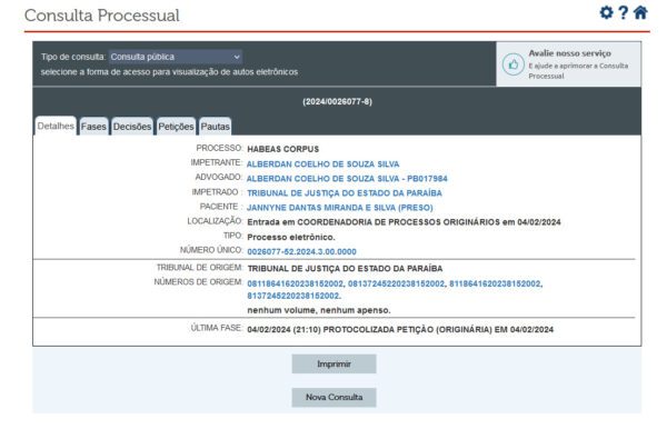| Confira detalhes do novo pedido de Jannyne Dantas no STJ: