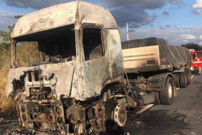 Mais um caminhão pegou fogo nesta sexta-feira (24). Dessa vez, o fato ocorreu na rodovia sentido João Pessoa/ Campina Grande, quando um caminhão de carga pegou fogo e ficou totalmente destruído. O caminhoneiro do veículo trafegava normalmente com o caminhão quando percebeu fumaça saindo do motor, o que fez ele parar o veículo no acostamento e sair a tempo, já que o fogo se alastrou rapidamente e destruiu toda a cabine.