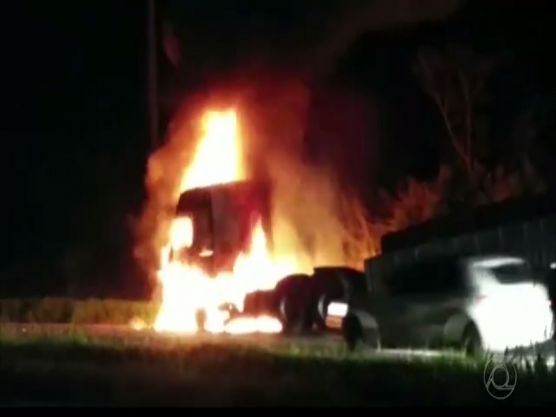 De acordo com informações da Polícia Rodoviária Federal, o fogo começou na parte da carreta.