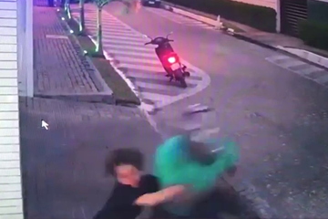 Imagens de uma câmera de segurança flagraram uma criança reagindo a um assalto em um condomínio residencial em Ponta de Campina, em Cabedelo, na Grande João Pessoa, na noite de quarta-feira (27). No vídeo, um homem em uma motocicleta se aproxima e aborda a criança e uma mulher. O assaltante derruba a mulher ao tomar a bolsa da vítima e a criança tenta segurar o suspeito.