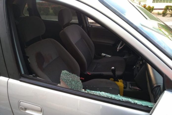 As vítimas foram surpreendidas por uma dupla em uma moto que emparelhou e anunciou o assalto. Um dos assaltantes conseguiu quebrar o vidro do carro do motorista.